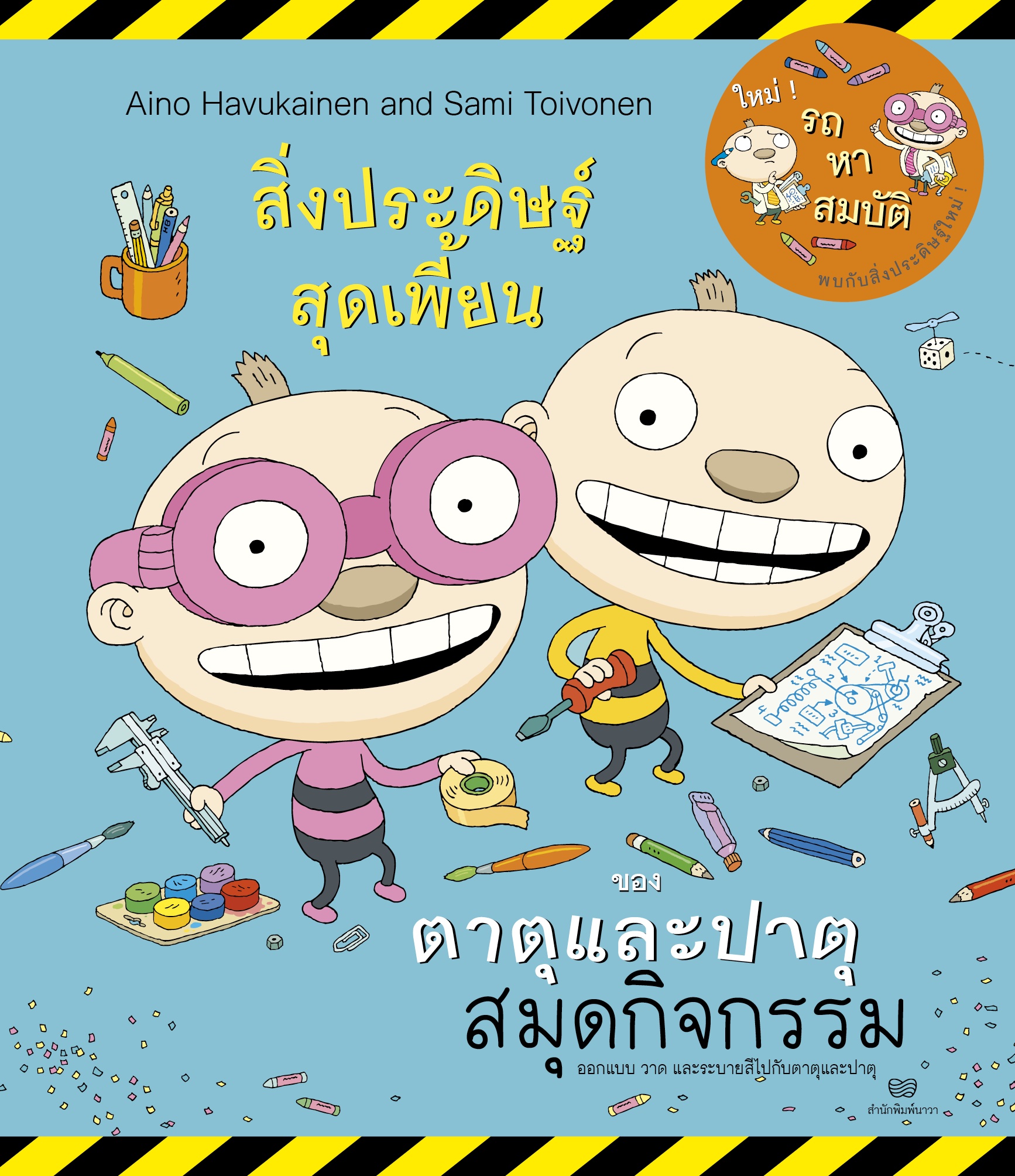สมุดกิจกรรมที่จะเปิดโอกาสให้เด็กๆ ได้ออกแบบ วาด และระบายสีสิ่งประดิษฐ์ สุดเพี้ยนไปกับตาตุและปาตุ จากชุดหนังสือเด็กสุดฮิตจากฟินแลนด์